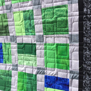 Stancy's back again this month with a couple more incredible quilts! LOVE this green and white one! It always amazes me how just using two fabrics can be worked in to such gorgeous quilts. With the minky backing on this one....I think it's just elegant. The modern feathery quilting design sends this one over the top in my book!